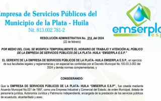 EL GERENTE DE LA EMPRESA DE SERVICIOS PUBLICOS DEL MUNICIPIO DE LA PLATA HUILA “EMSERPLA E.S.P” Informa a sus usuarios que, en Cumplimiento a lo establecido en el artículo 125 de la ley 142 de 1994 y
